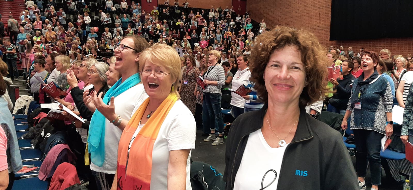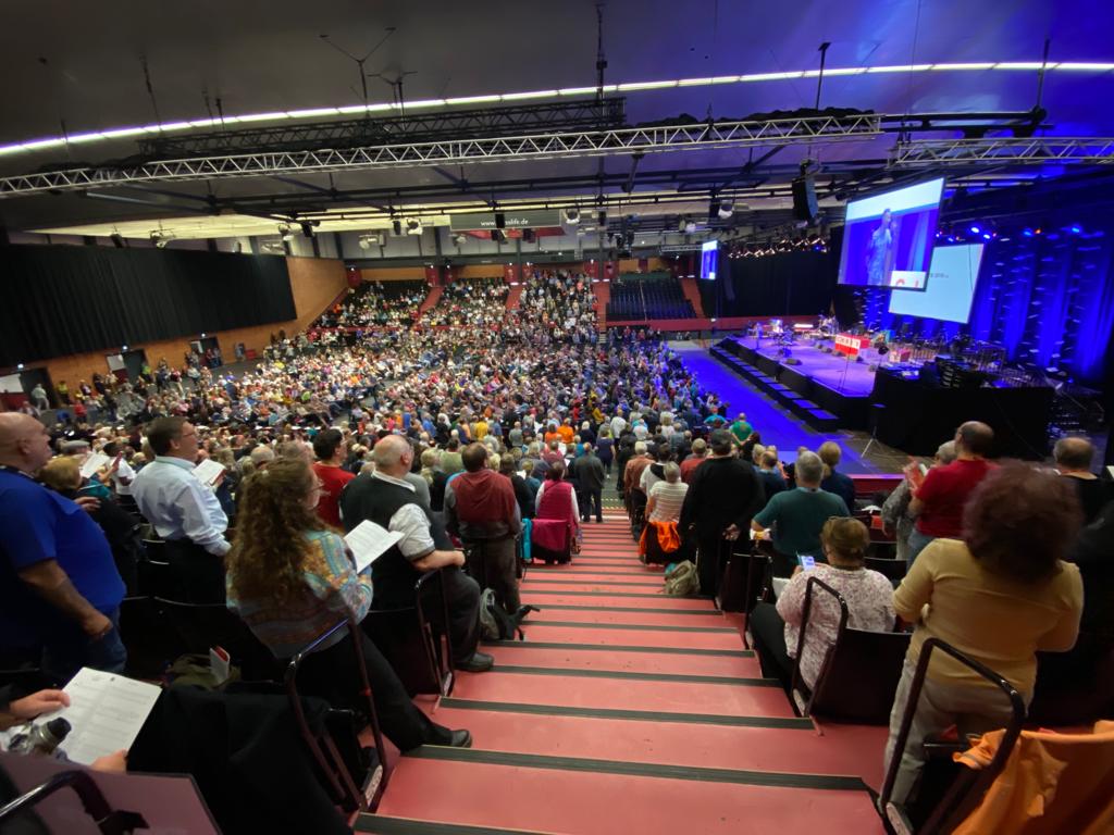 Samstag fand die erste Mass Choir Probe statt. Hier studierten die Baunataler Chormitglieder gemeinsam mit ca. 3000 anderen Stimmen neue Songs von renommierten Komponisten und Referenten aus der ganzen Welt ein. Dies war ein überwältigendes Erlebnis. Samstagabend konnten sich bei dem Konzert niemand mehr auf den Stühlen halten. Auch hier wurde mitgesungen und getanzt. Der Sonntag schloss dann den Gospelkirchentag mit dem Gottesdienst und dem zweiten Teil der Mass Choir Probe ab.